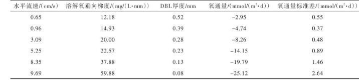 表1不同水平流速下溶解氧垂向梯度、DBL厚度和氧通量試驗(yàn)結(jié)果