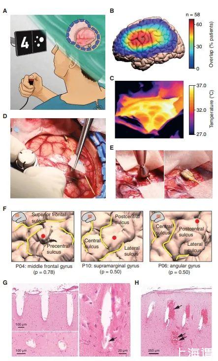 目前我們?cè)趩蝹€(gè)神經(jīng)元及其網(wǎng)絡(luò)層面對(duì)人類神經(jīng)系統(tǒng)的組織和運(yùn)作的理解存在巨大差距。本研究使用Blackrock Microsystems(Blackrock Neurotech)NeuroPort神經(jīng)元信號(hào)記錄系統(tǒng)結(jié)合猶他電極,對(duì)人類皮層進(jìn)行急性多通道單細(xì)胞記錄的方法。對(duì)13例左腦腫瘤患者進(jìn)行皮層急性記錄,發(fā)現(xiàn)低密度電極單細(xì)胞記錄更優(yōu)。在頂葉聯(lián)合皮層記錄到振蕩傳播,且神經(jīng)元對(duì)非符號(hào)和符號(hào)數(shù)字有調(diào)諧性,為研究人類高級(jí)認(rèn)知神經(jīng)機(jī)制提供了新方法。手術(shù)中可通過氣動(dòng)植入猶他電極至左腦皮層,術(shù)后組織學(xué)分析顯示電極軌跡可深入皮層深層,部分電極周圍存在微小出血但未擴(kuò)散,證實(shí)該技術(shù)在人體應(yīng)用的安全性與可行性。