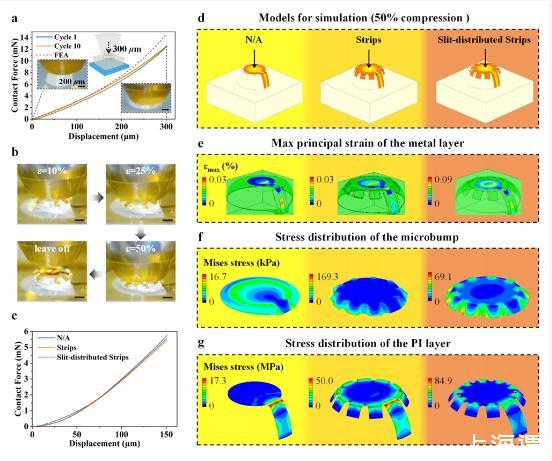 從結(jié)構(gòu)設(shè)計上看,SMBE有著獨特的“爪形微結(jié)構(gòu)”。在面對體內(nèi)常見的由外向內(nèi)和由內(nèi)向外的壓力時,其電極點能自適應(yīng)變形。超深度顯微鏡下的測量顯示,微凸起中心有著特定的高度曲線。而從工藝角度,其陣列的結(jié)構(gòu)設(shè)計和微納加工工藝,為其性能的實現(xiàn)奠定了基礎(chǔ)。在力學(xué)特性表征方面,它展現(xiàn)出了與腦組織良好的適配性。電化學(xué)特性也十分出色,為信號的高效傳輸和處理提供了保障。生物相容性評價及動物實驗驗證都表明,它在實際應(yīng)用中具有很大的潛力。特別是對胡須刺激和自外向內(nèi)壓力的在體神經(jīng)響應(yīng)實驗,充分證明了它的可靠性和有效性。