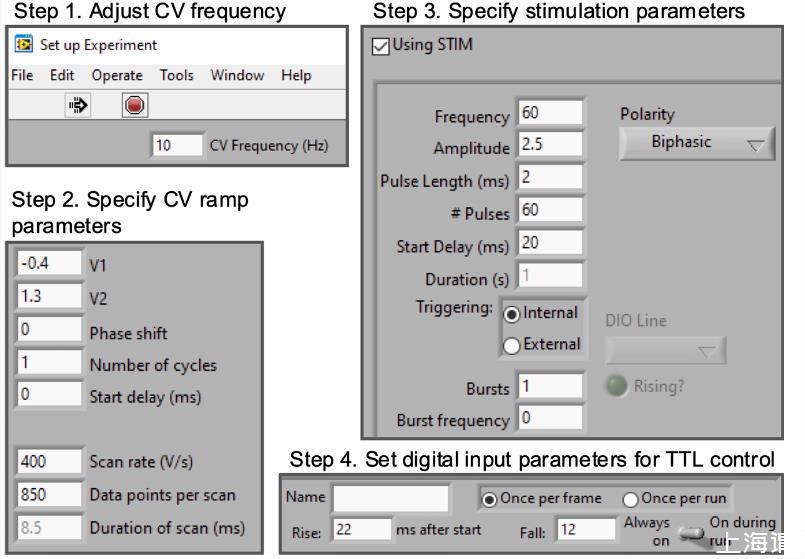 圖5:具有用于調(diào)整FSCV記錄參數(shù)選項的HDCV數(shù)據(jù)采集界面。
