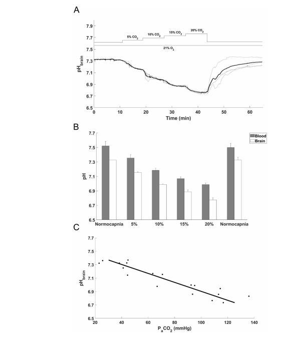 分級(jí)正常氧高碳酸血癥期間的pHbrain變化