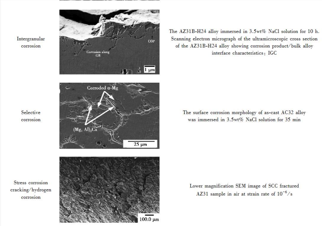 廣義的局部腐蝕包括點(diǎn)蝕、縫隙腐蝕、電偶腐蝕、晶間腐蝕、選擇性腐蝕、應(yīng)力腐蝕和氫致腐蝕等。合金中常見的局部腐蝕類型及表面形貌如表1所示。