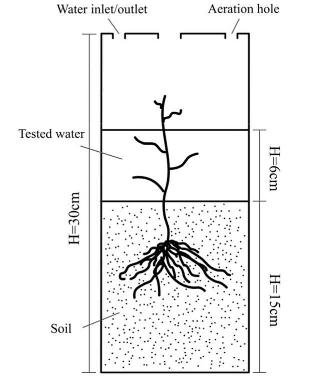 2016年7月8日至10日對(duì)湖水進(jìn)行了現(xiàn)場(chǎng)監(jiān)測(cè)。使用多參數(shù)儀器(美國(guó)YSI EXO2探空儀)收集以下水質(zhì)數(shù)據(jù):溫度(Temp)、溶解氧(DO)、濁度(桶)、葉綠素a(Chl.a)和電導(dǎo)率(EC)。從10平方米的采樣區(qū)收集24個(gè)完整的土芯,以盡量減少異質(zhì)性,然后壓入透明聚氯乙烯(PVC)(高度30厘米,直徑6.8厘米)管中。在取樣過(guò)程中,垂直按壓每個(gè)PVC管,以收集15厘米的浸沒(méi)土壤。在用橡膠塞蓋住每根PVC管后,清除土壤表面的垃圾。所有這些PVC管在48小時(shí)內(nèi)被運(yùn)回實(shí)驗(yàn)室。此外,收集了具有代表性的、同質(zhì)的穗狀根瘤菌幼苗,并轉(zhuǎn)移到溫室中進(jìn)行后續(xù)培養(yǎng),以提高其在人工環(huán)境中的存活率。