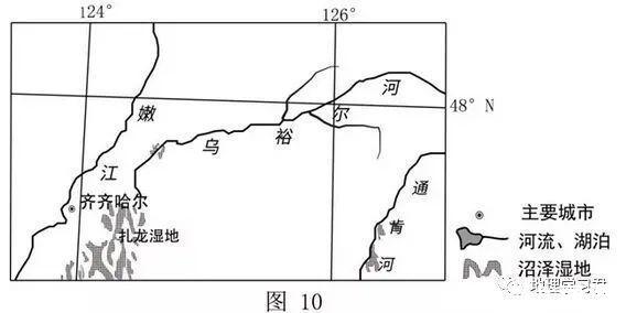 (1)河流排水受阻常形成堰塞湖,烏裕爾河排水受阻卻形成沼澤濕地。據(jù)此推測扎龍濕地的地貌、氣候特點(diǎn)。