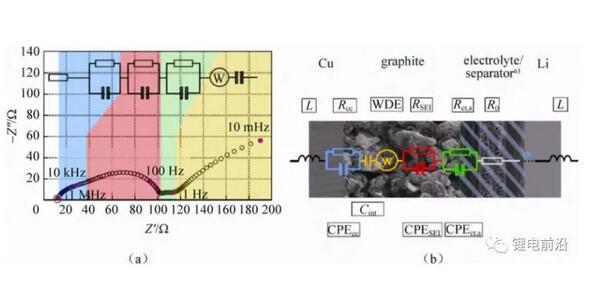 鋰離子電池的基礎研究中更多的用頻率域阻抗分析方法。EIS由于記錄了電化學電池不同響應頻率的阻抗,而一般測量覆蓋了寬的頻率范圍(μHz-MHz),因此可以分析反應時間常數存在差異的不同的電極過程。