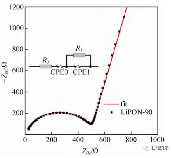 圖12 LiPON薄膜電解質在22℃時的阻抗譜Nyquist圖