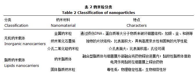 采用納米遞藥系統可以克服AMPs在毒性、對蛋白水解的敏感性和藥代動力方面的不足[50]。納米粒根據材料來源可分為無機納米粒載體和脂質納米粒載體兩大類(表2)。