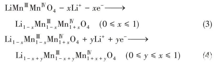 LiMn2O4在實現(xiàn)Li+脫出與嵌入過程中的反應(yīng)過程分別如式(3)和式(4)所示。