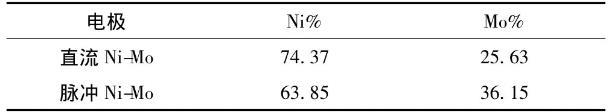 表3是能譜儀測得的鍍層元素組成的質量百分比。由表中可以看到,脈沖電沉積得到的Ni-Mo合金鍍層中的Mo元素含量比直流電沉積要高,而鎳鉬合金鍍層的析氫性能在一定程度上是隨著鉬元素含量的增加而提高的,所以說鍍層中高Mo元素含量是脈沖電沉積能降低析氫過電位的重要原因。